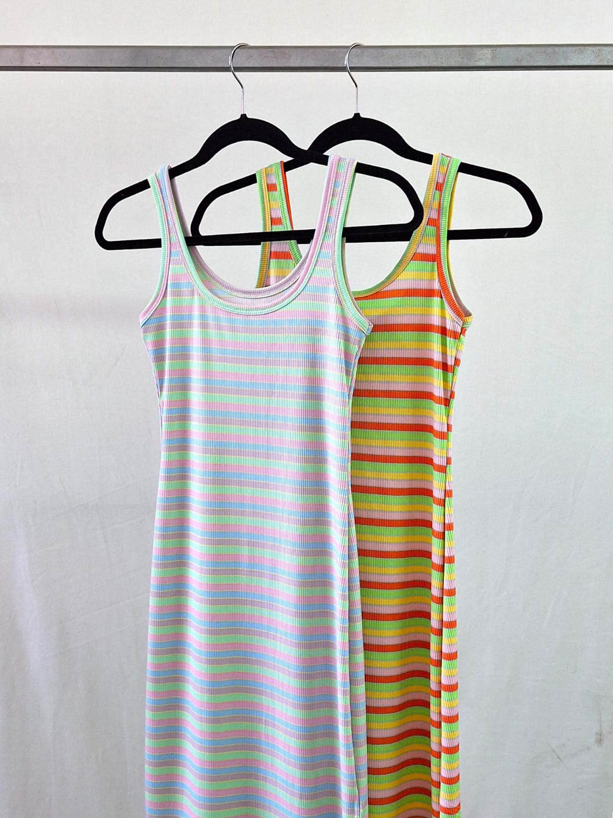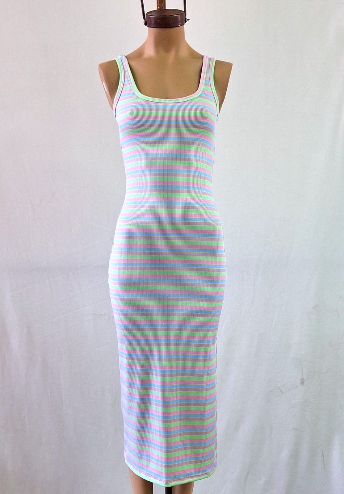 Vestido rayado largo con tajo al costado micromorley 2026